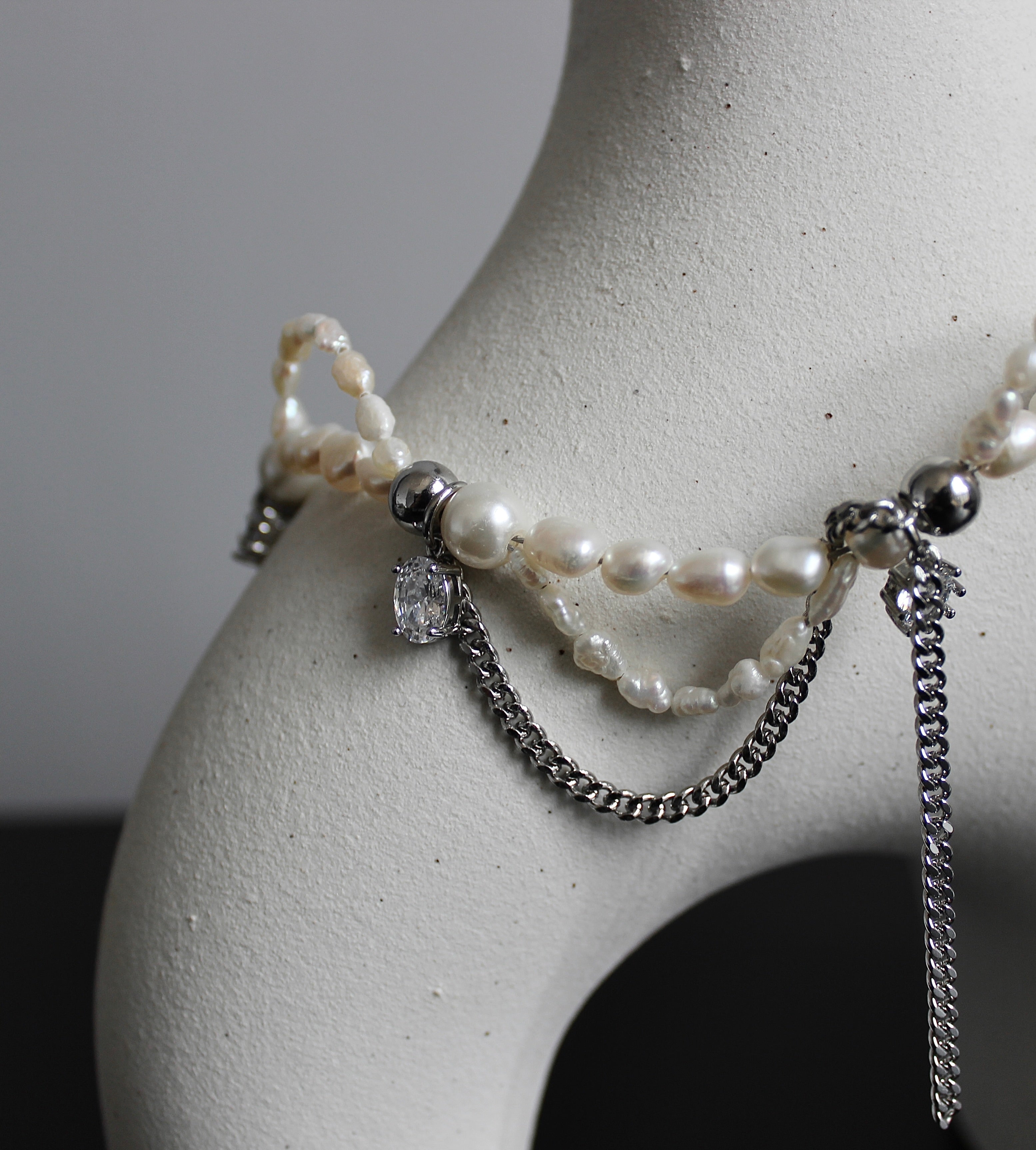 Layered Cross Pearl Necklace